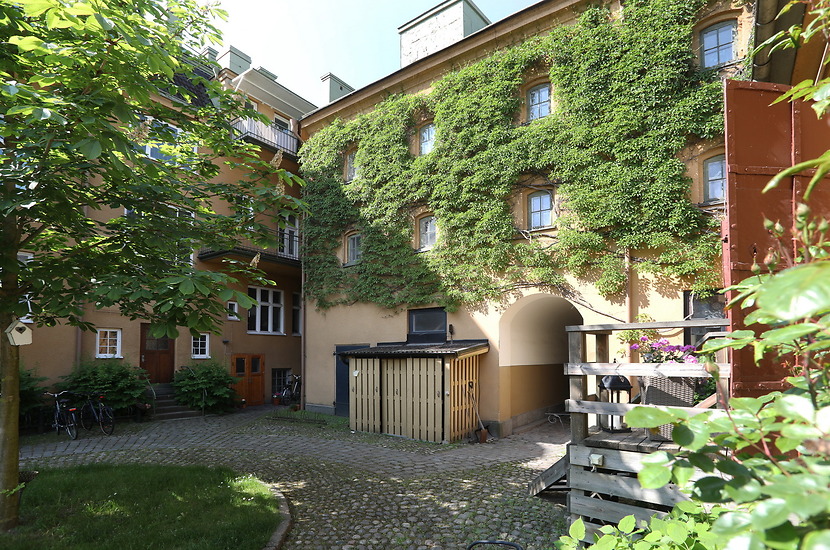 Huset innehåller två bostäder på nedre botten, en paradvåning en trappa upp och två vindsvåningar. Paradvåningen har fyra rum och hall i svit mot gatan, tre sovrum och kök mot Orangerigatan och gården. Vid köket finns en utbyggd spiraltrappa till gården. De genomgående rektangulära höga fönstren är småspröjsade.